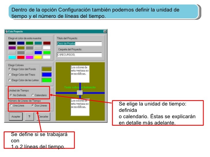 número de líneas del tiempo. Se elige la unidad de tiempo: definida o