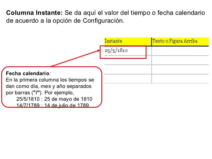 Instante: Se da aquí el valor del tiempo o fecha calendariode acuerdo a la