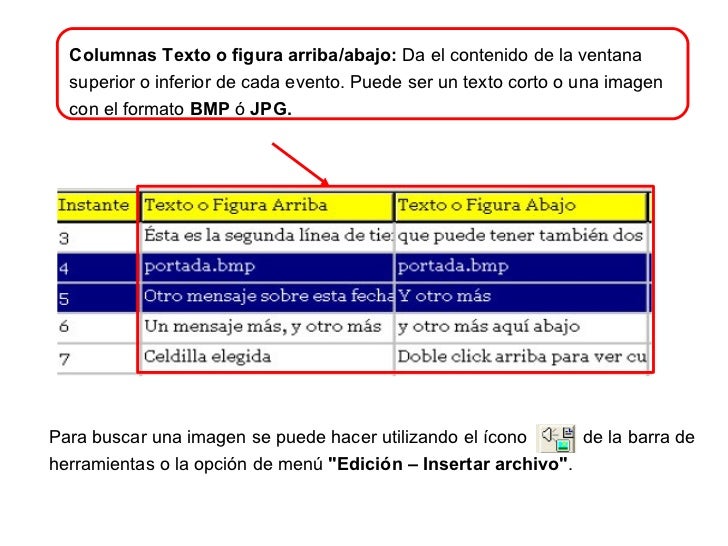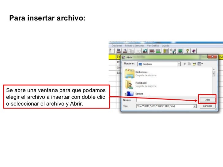 insertar archivo:Se puede insertar cualquiera de estos archivos en la
