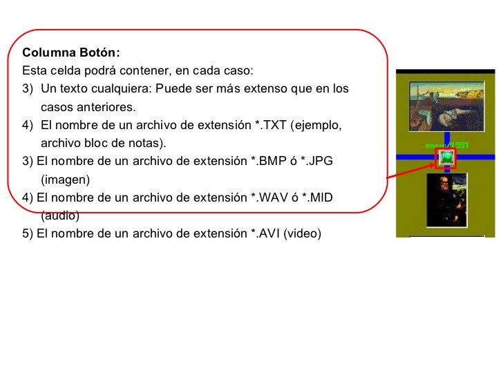 Botón:Esta celda podrá contener, en cada caso:3) Un texto cualquiera: