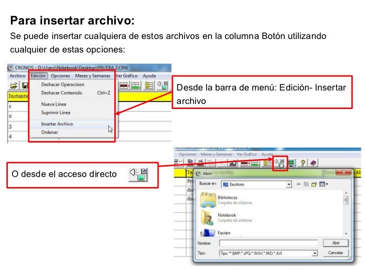 insertar archivo:Se abre una ventana para que podamoselegir el archivo a