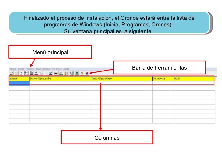 Windows (Inicio, Programas, Cronos). Su ventana principal es la siguiente: