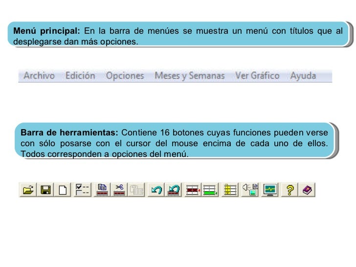 aldesplegarse dan más opciones. Barra de herramientas: Contiene 16 botones