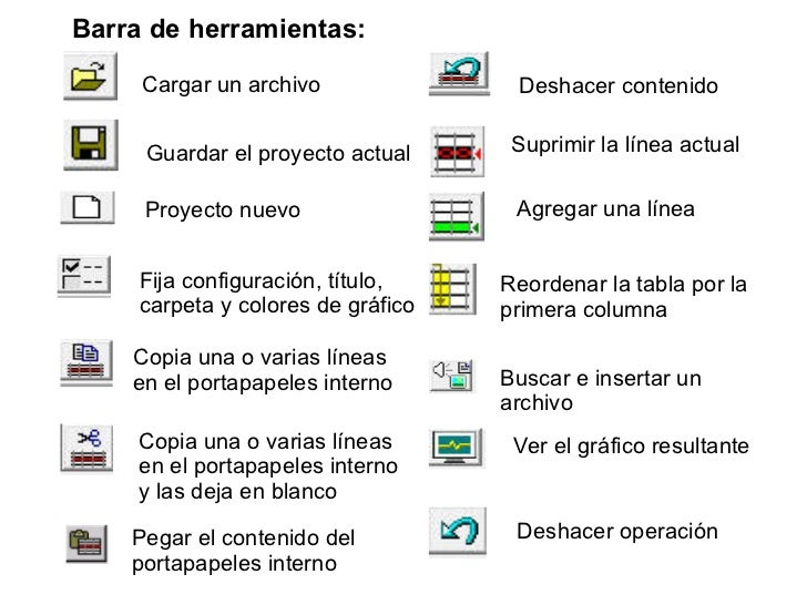 de herramientas: Cargar un archivo Deshacer contenido Guardar el proyecto